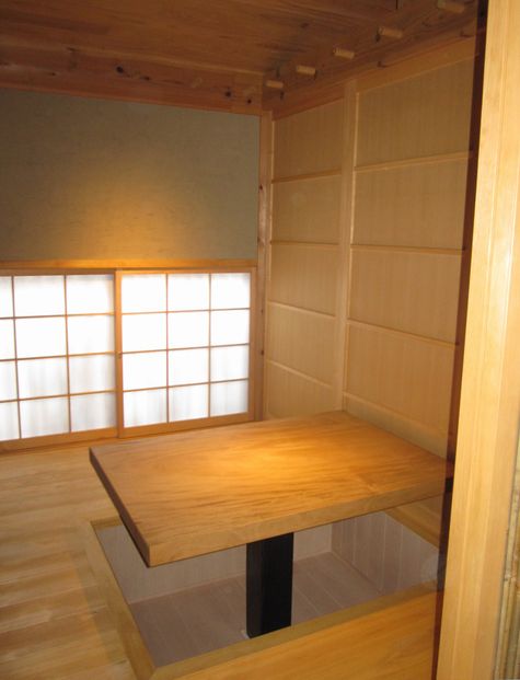 お店の雰囲気に合わせるため、栃のカウンターと椅子に着色をしていますが