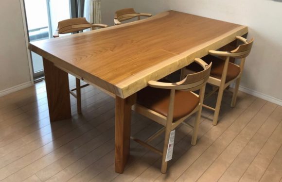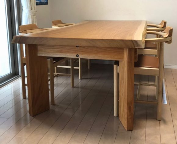 木目の美しさを活かし、一枚板耳付きのダイニングテーブルに仕上げてあります。