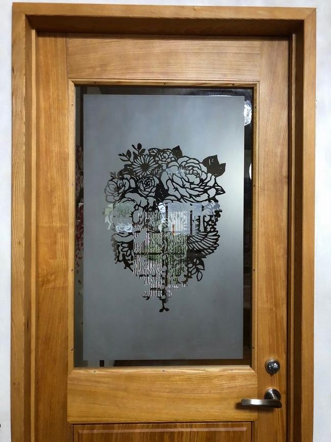サンドブラストという方法で、ガラスに絵が