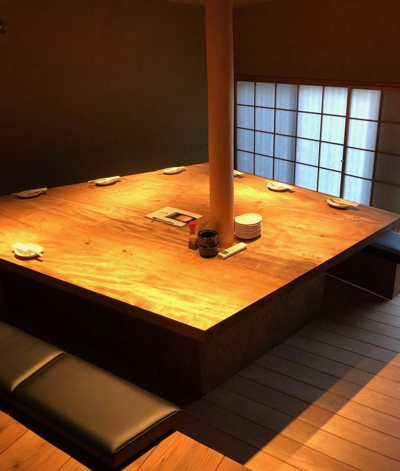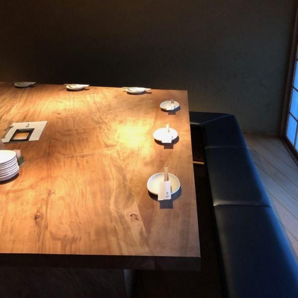 そのお店のテラス部分を室内の個室に改築したところに、テーブルを納品しました。