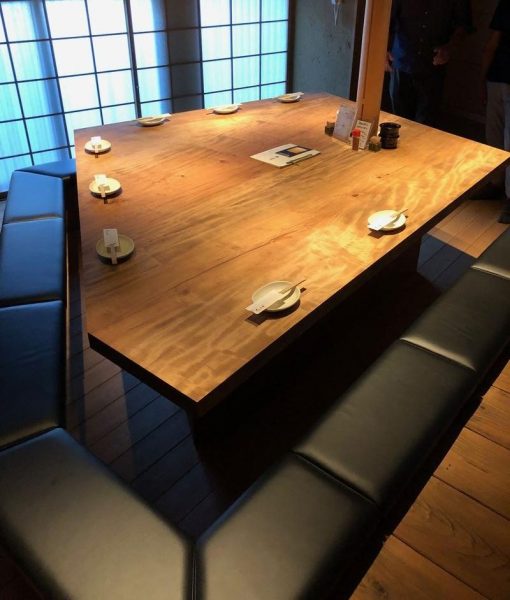 こちらのお店のテーブル、カウンターは全て当店の栃板を使用して作られています。