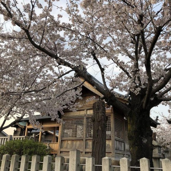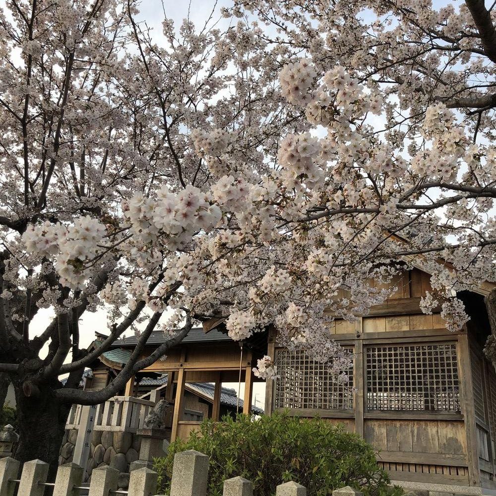 ハンドジェルを買いに行ったお店の駐車場の横の神社、桜が満開でした。
