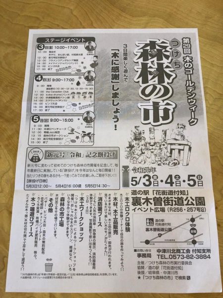 ゴールデンウイーク恒例 つけち森林の市(もりのいち) 5月3日(金)~5日(日)もうすぐです!