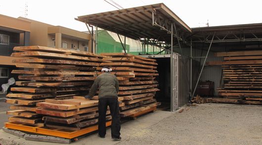 40~50日位かけて板を乾燥させ、その後 天然乾燥し 乾燥材に仕上げていきます。